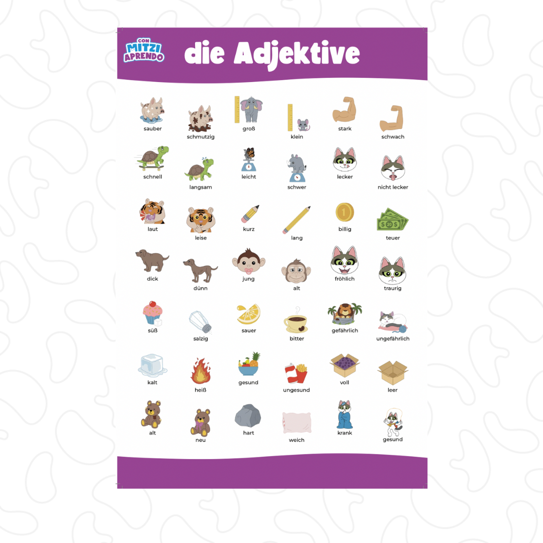 Con este pack los niños aprenderán los adjetivos en alemán y no se sentirá como estudio.